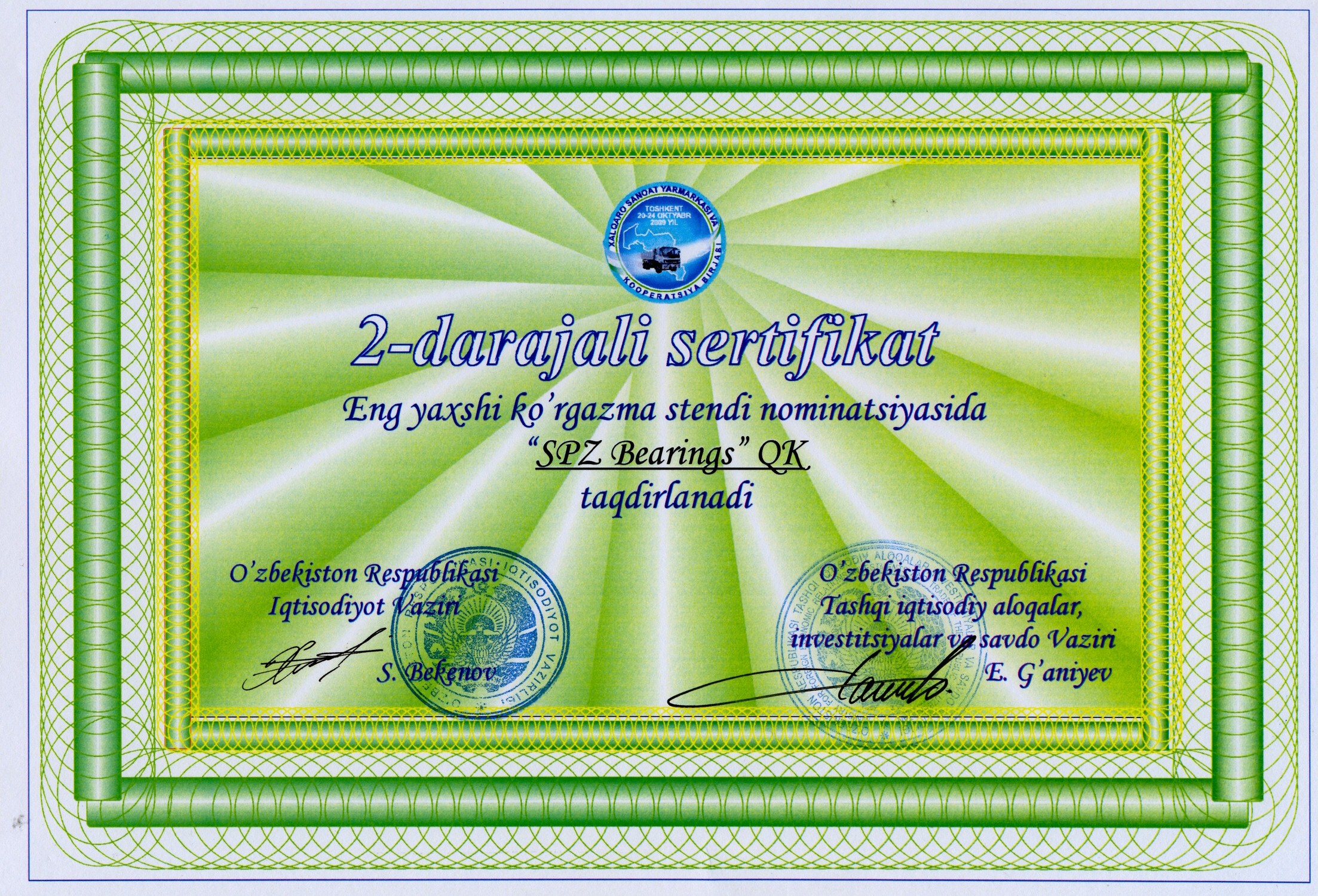 В 2004 году на базе российских и узбекских производителей подшипниковой продукции было создано совместное предприятие “SPZ-BEARINGS”. Благодаря финансовой и технической поддержке российских партнёров на сегодняшний день успешно развивается производство подшипников качения, других узлов и механизмов для автомобилестроения, а также запасных частей для различных областей промышленности Республики Узбекистан.